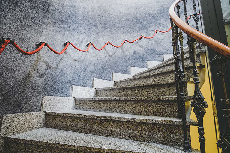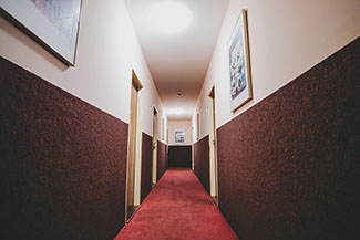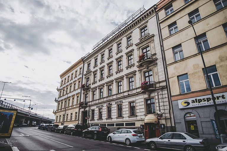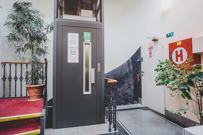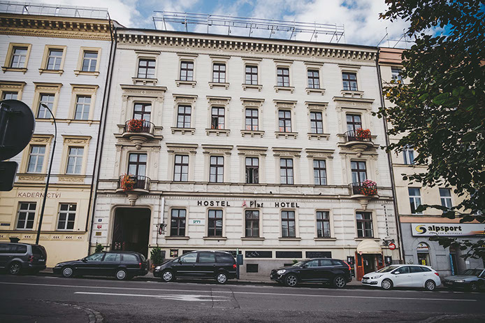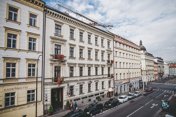 Jednotlivá patra jsou spojeny točitým schodištěm, v jehož středu byl vybudován výtah pro tři osoby. Budova je napojena na kompletní IS, v 5.NP je pak umístěna vlastní plynová kotelna. V suterénu se nachází restaurace s kuchyní, v prvním podlaží je zázemí, recepce, kanceláře a administrativa k hostelu, ve 2. až 4. podlaží se ve dvou křídlech nachází 33 pokojů hostelového typu, v 5. podlaží se nachází 10. hotelových pokojů.