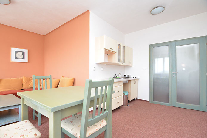 Hotel Omega nabízí 60 lůžek (5 apartmánů + 16 dvojlůžkových pokojů - každý s vlastní koupelnou), 17 samostatných chatek a rozsáhlé rekreačně-sportovní plochy. Leží v obklopení lesů doslova jen pár minut od lyžařského areálu v Rokytnici a nabízí úžasné výhledy do údolí z většiny pokojů